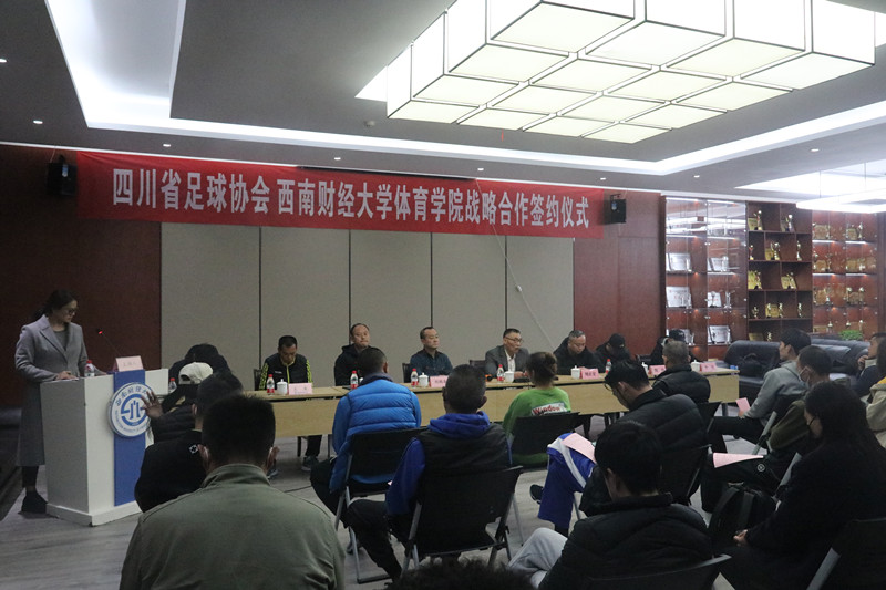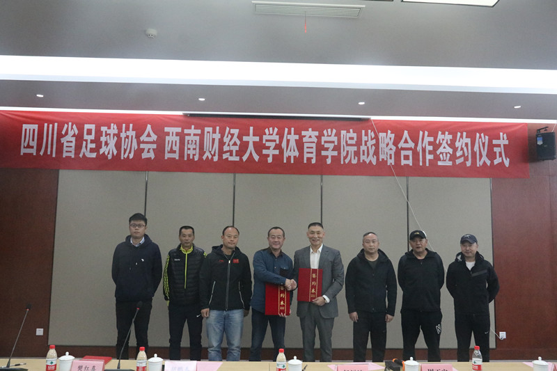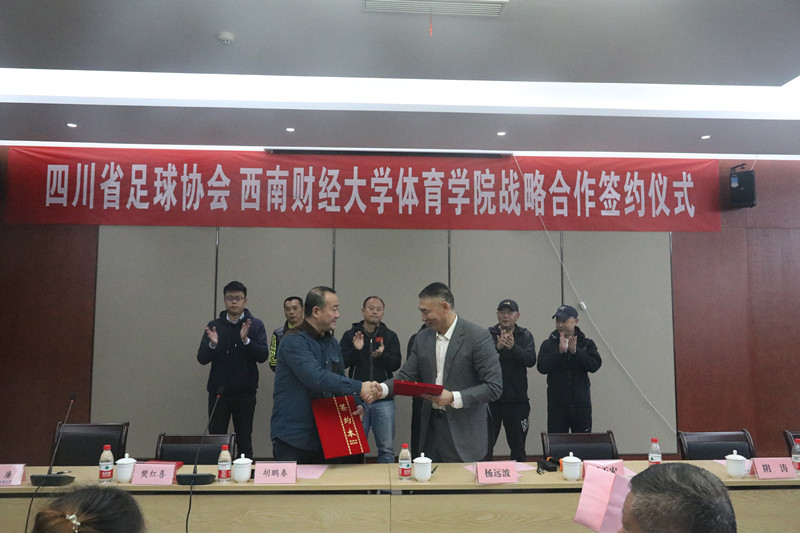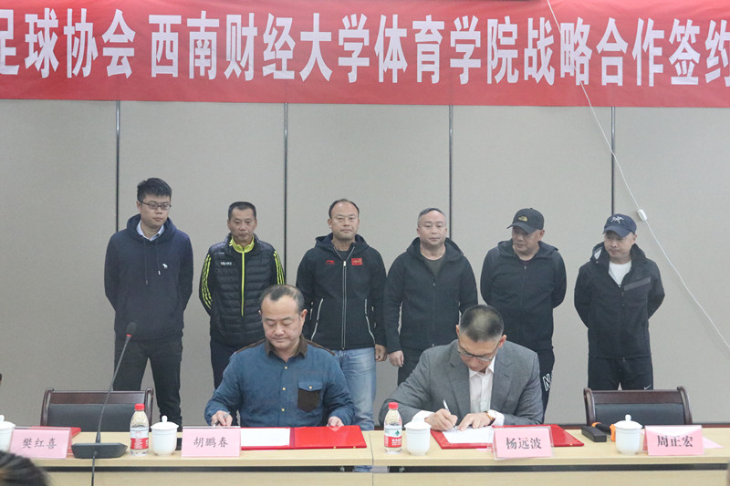 11月3日,四川省足球协会与西南财经大学心博网页登录_心博(中国)战略合作签约仪式在柳林校区光华体育馆举行。四川省足球协会常务副主席兼秘书长胡鹏春、学院院长兼直属党支部书记杨远波分别代表双方签约。参加签约仪式的还有省足管中心副主任樊红喜,四川省足球协会副秘书长吴廉,心博网页登录_心博(中国)副院长周正宏、阴涛,副书记李治,院长助理毛艳、陈丛刊及竞技体育系负责人,学校高水平运动队教练,男女足球队运动员等。