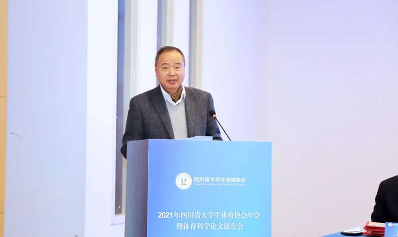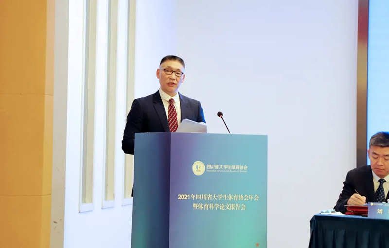 陈朝先代表省委教育工委、教育厅在大会上讲话。他代表四川省教育厅对年会的顺利召开表示热烈地祝贺。陈朝先指出,2021年四川省学校体育工作取得了显著成效,主要表现在学校体育工作的顶层设计不断完善、足球育人成绩显著、以“贡嘎杯”为代表的品牌赛事日益成熟、高校担当积极作为、体教融合在实践中深化。陈朝先强调,成绩取得的同时也要看到问题的存在,如高校学生体质健康监测数据比基础教育阶段明显偏低;多数学校未能落实全学段开设体育课及体测达标方可毕业的要求;高校服务地方经济社会发展动力不足、能力不足等。最后,陈朝先对到会的高校心博网页登录_心博(中国)书记、院长提出殷切期盼, 一要牢记育人初心使命,坚持“健康第一”教育理念;二要对标竞进改革创新,努力实现自身进步和体育工作整体提升;三要服务地方担当作为,支持地方经济社会发展与基础教育阶段学校体育工作。