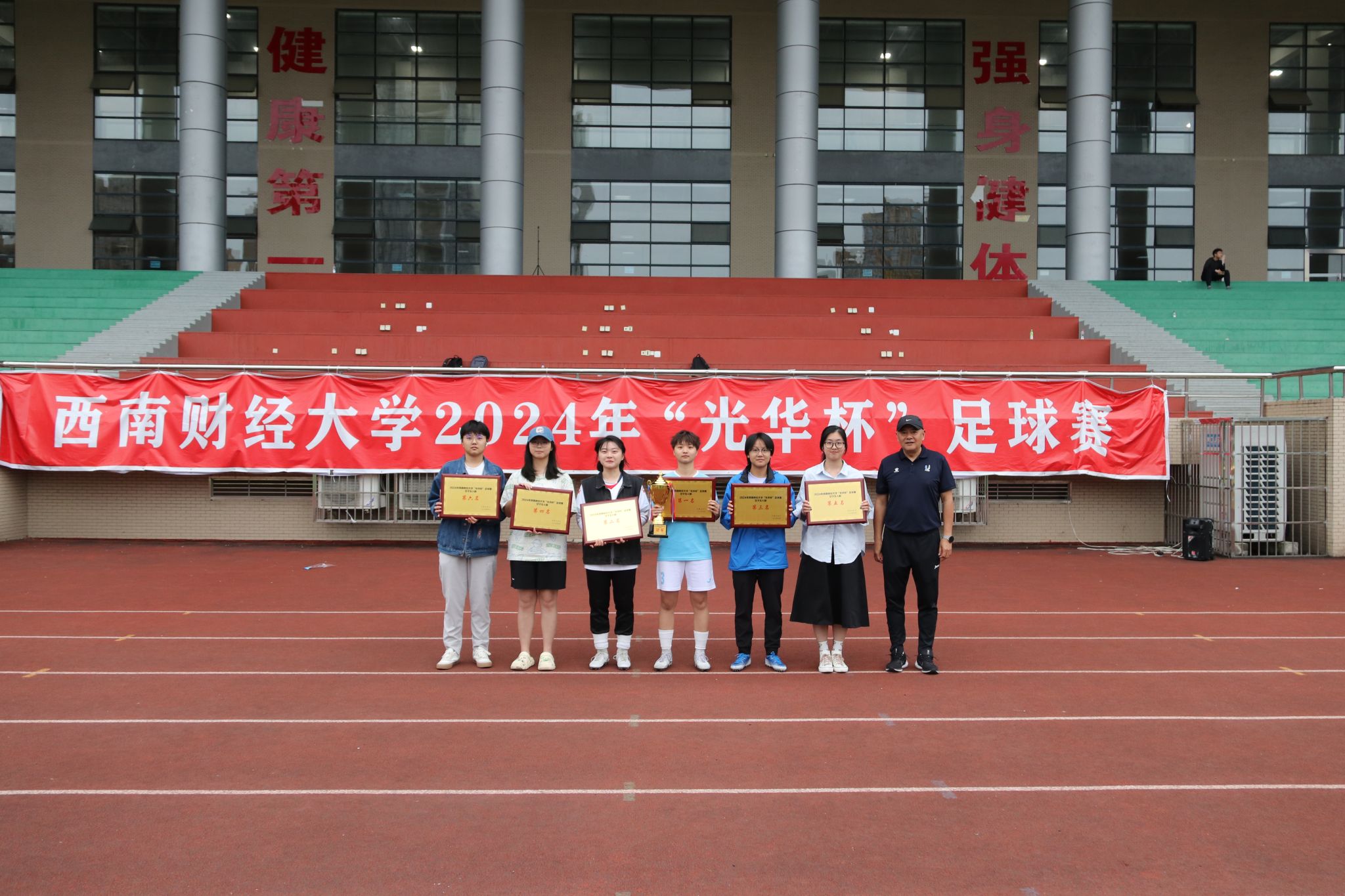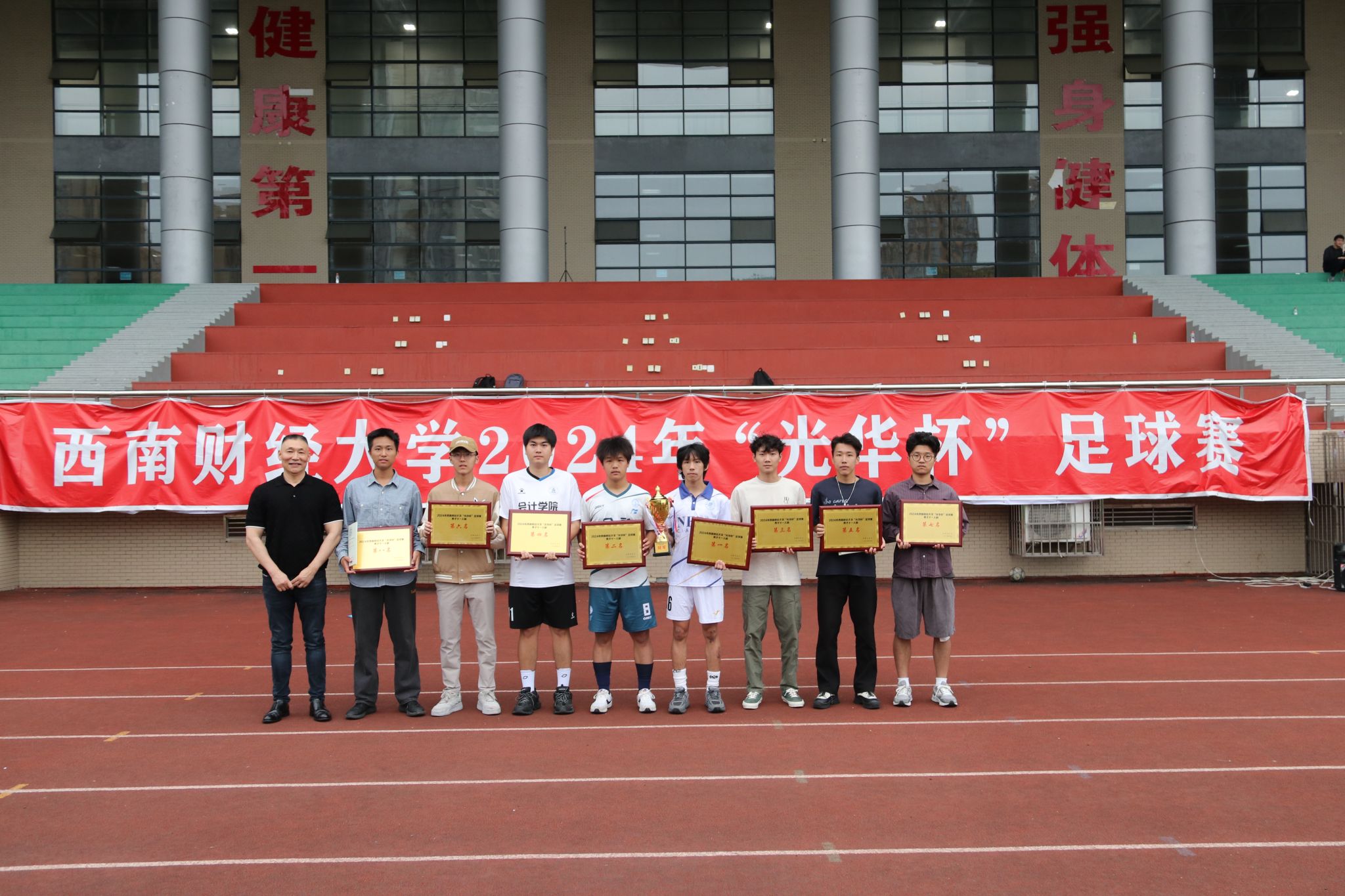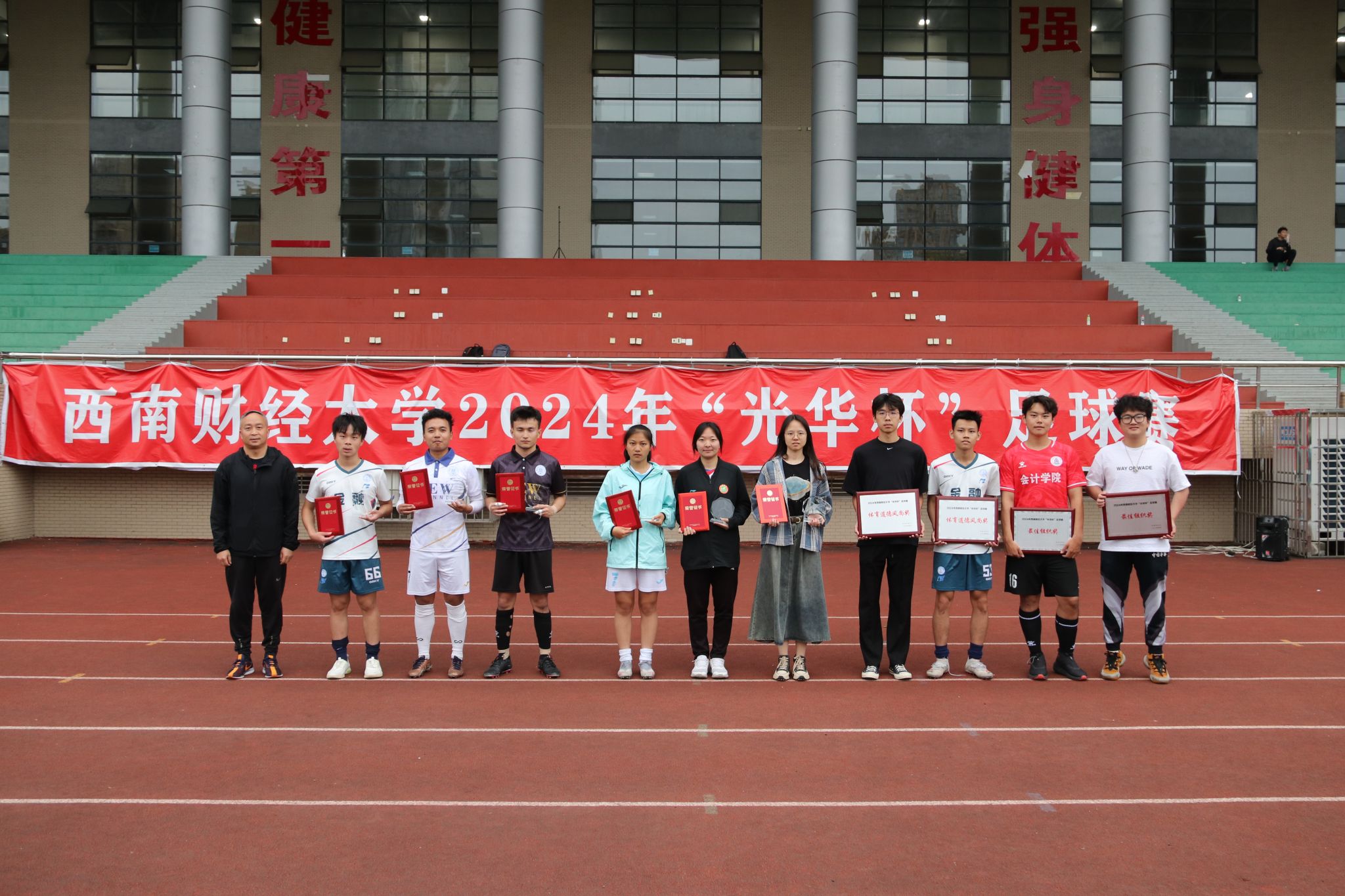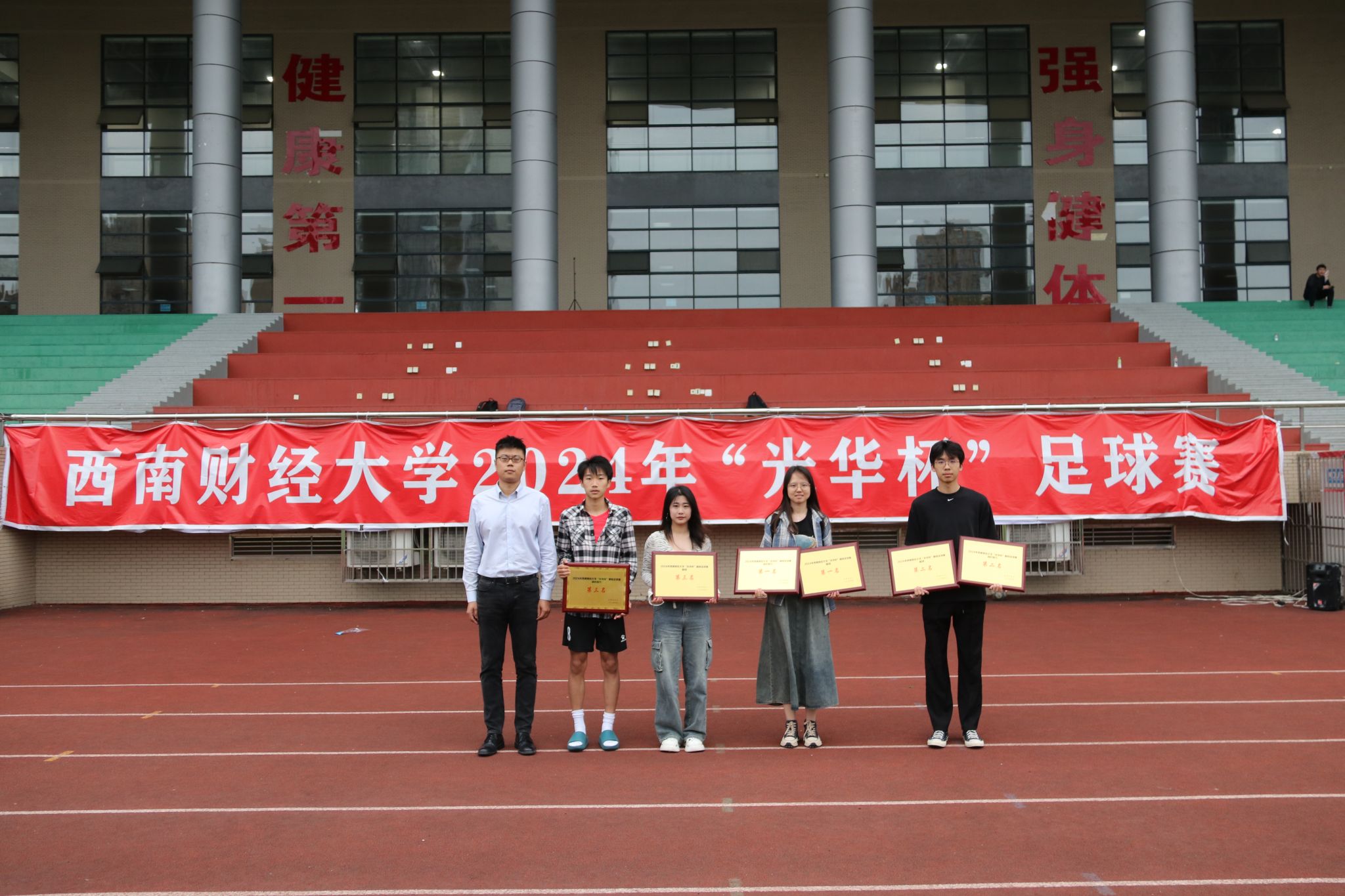 4月23日下午,“礼赞新时代·奋进新征程,迎百年校庆·铸西财辉煌”2024年西南财经大学“光华杯”足球比赛颁奖仪式在晨曦足球场举行。心博网页登录_心博(中国)院长杨远波,党委书记周正宏,副院长阴涛、陈丛刊,副书记李治为获奖学院以及个人颁发了荣誉证书及奖牌。