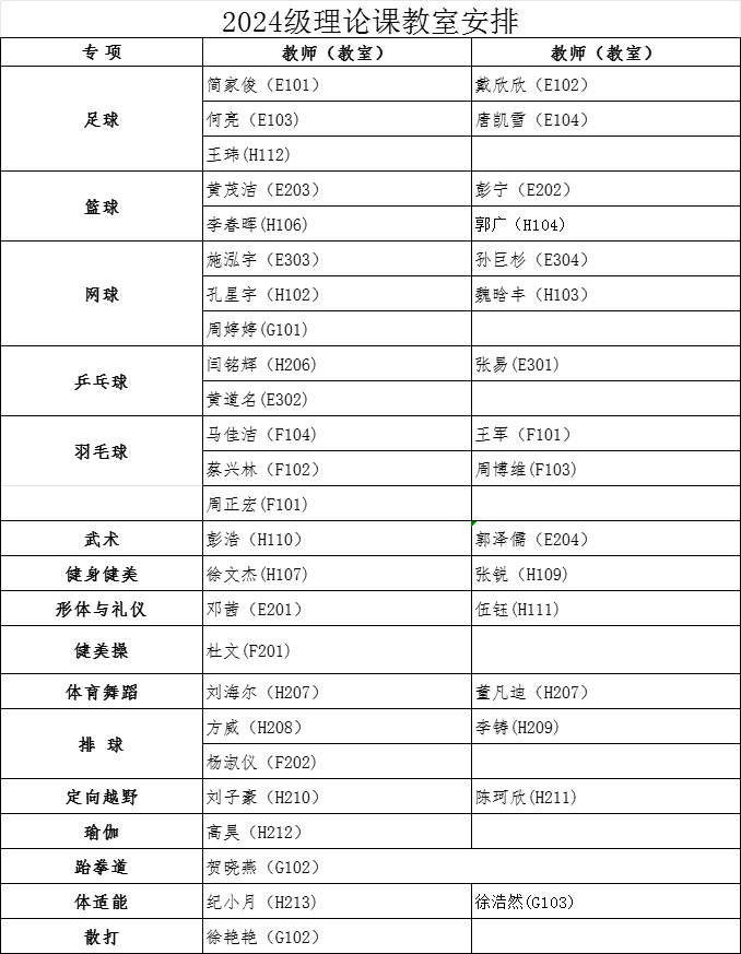 经教务处同意,本学期2024级本科生第3周体育课为心博网页登录_心博(中国)理论课,9月29日起恢复户外教学。根据教室资源状况,现将理论课具体安排通知如下: